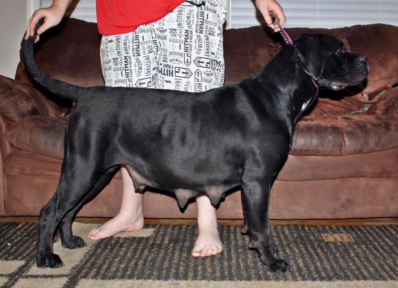 Betty Boop is a Certified Therapy dog that Dei Volsci Cane Corso in Italy was kind enough to entrust to us. This dog is the kindest spirited Cane Corso I've ever met. Betty Boop is a very correct Cane Corso in so many ways. We are enjoying her immensely and look forward to the positive contribution she will make to Pirate's Den.